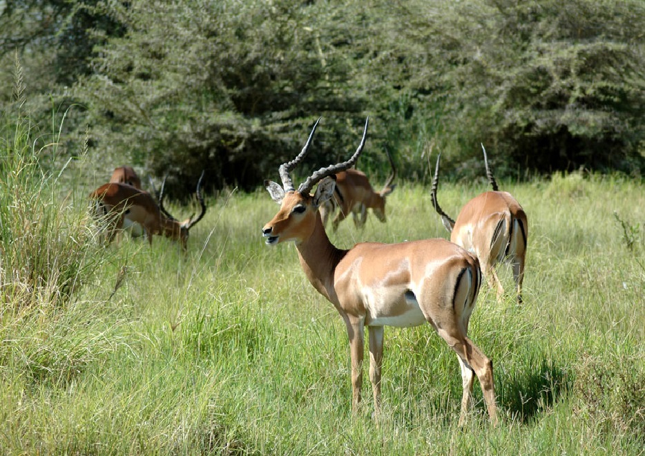 Lake Manyara is a shallow lake in the the East Aftican Rift said by Ernest Hemingway to be the "loveliest [lake] ... in Africa,". It is also the home of a diverse set of landscapes and wildlife. While most known for baboons, the lake and its environs is also home to herbivores such as hippos, impalas, elephants, wildebeests, buffalo, warthogs and giraffes. Lake Manyara provides opportunities for ornithologists keen on viewing and observing over 300 migratory birds, including flamingo, Long-crested Eagle and Grey-headed Kingfisher.